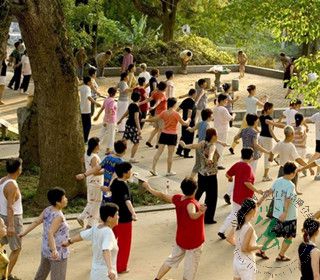 说着钱明拉着母亲就往外走,钱明家住的小区里有个小广场,每天夜幕降临都会聚集很多人来跳健身舞,伴奏音乐还是最流行的歌曲。钱明说:“当时我带着我妈就在旁边看人跳,看了一会儿我看我妈身子扭了几下,知道她想跳可是不好意思,我就拉着她陪着跳。”钱明带妈妈跳了几个动作,看到妈妈不仅四肢协调,而且节奏感很强,慢慢随着她的步子,一点点地跟上了节拍。
