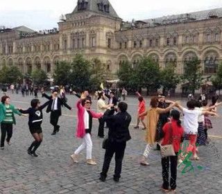 2014年6月14日,一组“中国大妈”在俄罗斯莫斯科红场跳广场舞的照片在网上热传。这次同样引来了当地警察,而大妈们称,警察仅是提醒她们“小声点”而已。
