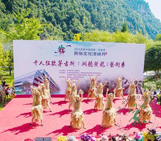 29日上午,2000余名中外游客和张家界市民在武陵源黄龙洞景区欣赏了当地有着中国戏剧“活化石”之称的土家狂欢茅古斯舞。主办方介绍说,这是2016首届中国湖南张家界民俗文化活动月第三大节点活动。
