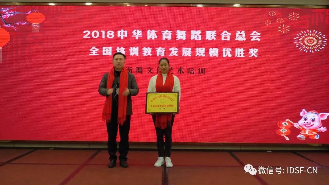 尚舞文化艺术培训荣获2018中华体育舞蹈联合总会全国培训教育发展规模优胜奖的单位