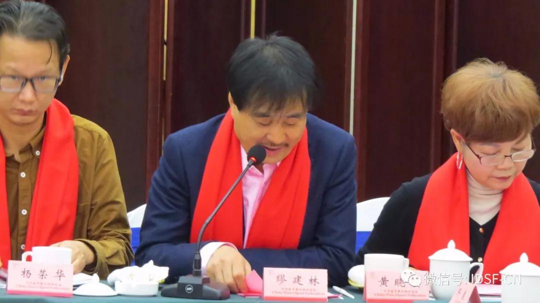 中华体育舞蹈联合总会、张家港市国际标准舞协会会长缪建林作了《拥抱新时代 担当新使命》的工作报告。报告总结了2018年的主要工作成绩,并做出2019年度工作计划。 缪会长号召广大舞蹈教育工作者以党的十九大精神和习近平新时代中国特色社会主义思想为指导,以不断实现人民对美好生活的向往为目标,全力普及开展体育舞蹈活动,不断提升国际标准舞水平,全面加强体育舞蹈队伍建设,体育舞蹈队伍发展迅速,总会会员队伍不断壮大,坚持公平、公正、公开做好舞蹈的考级考牌工作,大力拓展各类平台和载体建设,全面提高体育舞蹈学校和培训中心的综合水平,推动各地体育舞蹈(国标舞)更加繁荣兴旺,为繁荣民族文化,丰富人民群众精神文化生活作出新的贡献!