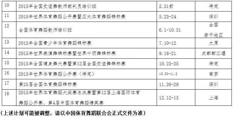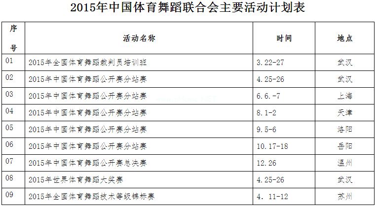 导读:2015年中国体育舞蹈联合会主要活动计划表下载