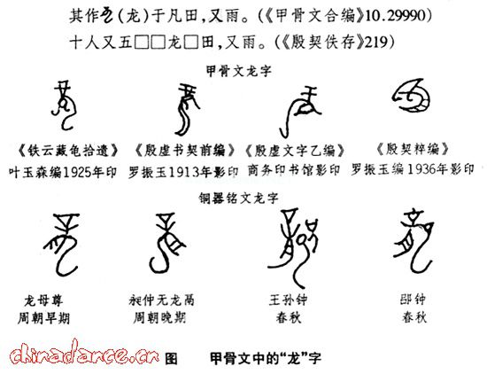 商代有作土龙求雨的风俗。甲骨文中的“龙”字有多种写法如: