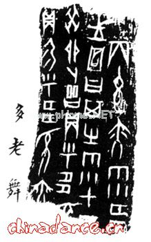 三是,最早的、记录舞蹈的文字——甲骨文、金文的出现,证明中华民族舞蹈文化有文字记载可考的历史,距今已有3600余年。