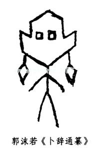 商代甲骨文中的巫字写作“”,直到战国时代,还有这种写法。有人认为“”(巫)字造型的含义是十分清楚的:“上横和下横表示天地,左竖和右竖表示四方,意即贯通天地四方者为巫。”(见陆思贤:《对甲骨文中舞蹈的若干认识》)由于巫在进行巫术活动时要舞蹈娱神、通神,或装神,所以“巫舞”是巫术活动中的重要组成部分。另一些人则认为:巫字是由甲骨文的舞字演化而来,巫人是我国最早的舞蹈专家。实际上,甲骨文中的“”(巫)与“”(舞)是两个完全不同的字。有各自不同的含义。“”(巫),已如上述。“”(舞)字,有多种写法(如下图),像人两手执兽尾或鸟羽而舞。由远古传说及岩画证明:原始时代已有手执牛尾和鸟羽而舞的形式。商代的舞蹈,直接从原始舞蹈继承、发展而来。舞字的造型,正表明了这种发展轨迹。