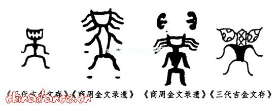 上图所列举的几个徽号文字,头部特大,且异样。因此,人们戴着面具驱鬼辟邪或装神弄鬼的史实大致是可以肯定的。东汉王充《论衡·解除》所载上古神话传说颛顼有三个儿子,出生后死了,死后都变成了厉鬼,“主疫病人”。故年终时要驱鬼逐疫,送陈迎新纳吉,后世竟相仿效。由此可见驱鬼逐疫的风俗由来已久。古代傩仪也大都是在年终举行的。这些殷周的徽号文字,是我国历史悠久的驱鬼逐疫的“傩舞”的源头。
