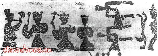 汉代山东画像石鼓舞图(摹本局部)