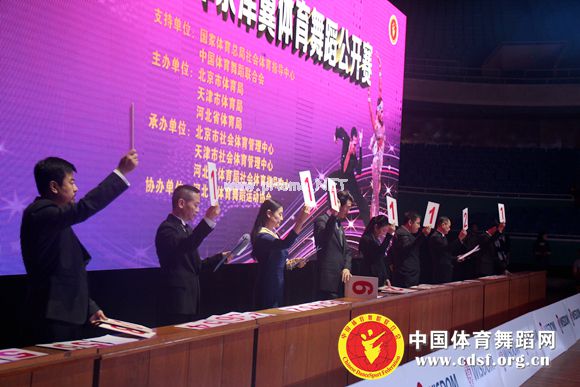 第一天的比赛在中国体育舞蹈联合会委派的国际级、国家级裁判员们公开亮牌后圆满结束。