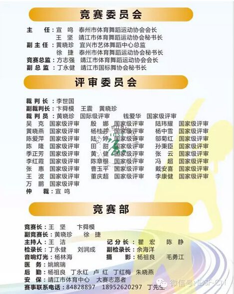 日程安排(一)裁判员报到:比赛前一天下午16:30前在靖江市人民路56号(人民公园大门北侧30米)银河文化艺术学校集中。
