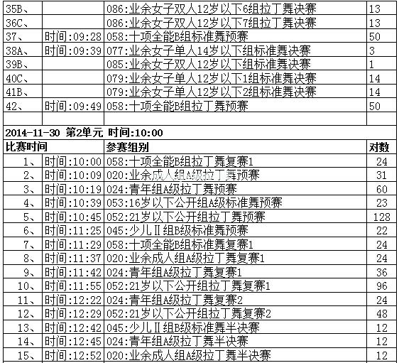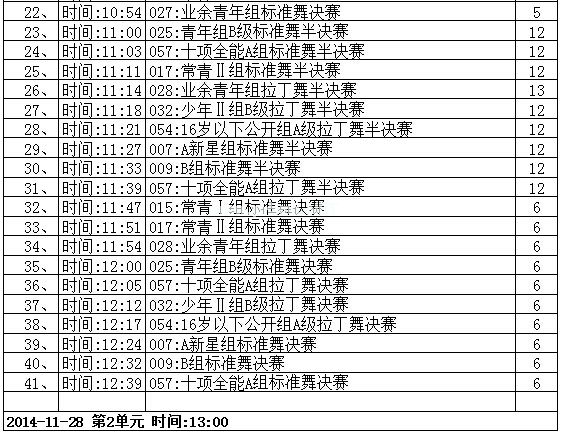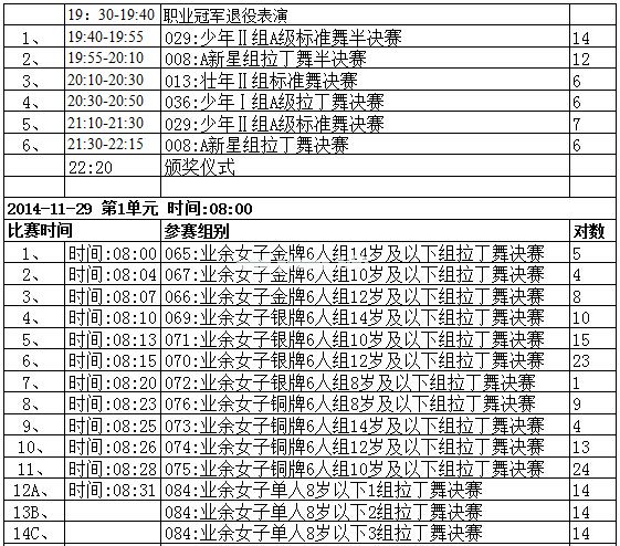 2014年第24届全国体育舞蹈锦标赛赛程表