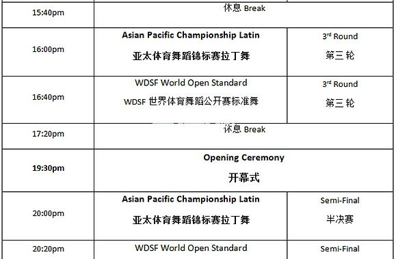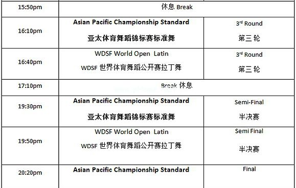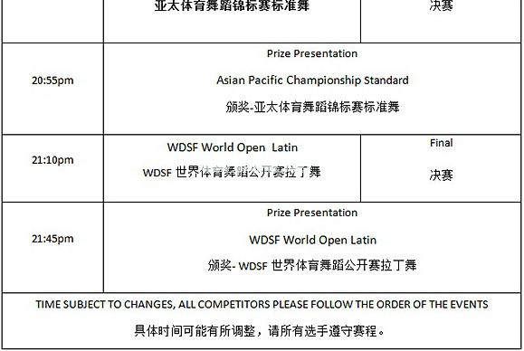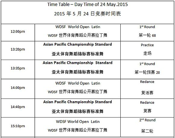 2015年WDSF世界体育舞蹈公开赛暨2015年WDSF亚太体育舞蹈锦标赛赛程表