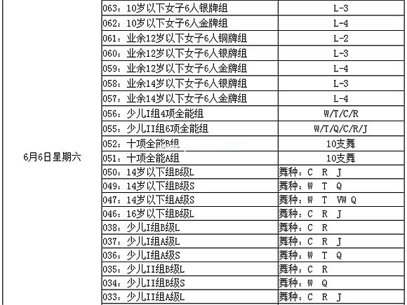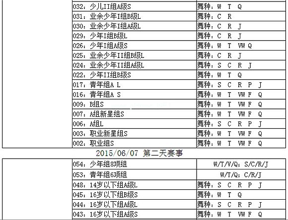 2015年第一届中国体育舞蹈技术等级锦标赛赛程表 2015年第一届中国体育舞蹈
