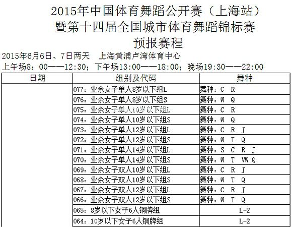 2015年中国体育舞蹈公开赛(上海站)暨第十四届全国城市体育舞蹈锦标赛预报赛程