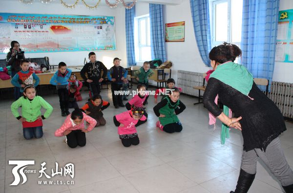 1月5日,福海县文体局的住村干部在解特阿热勒乡阔克铁热克村,为这里的孩子们办起了舞蹈兴趣班。