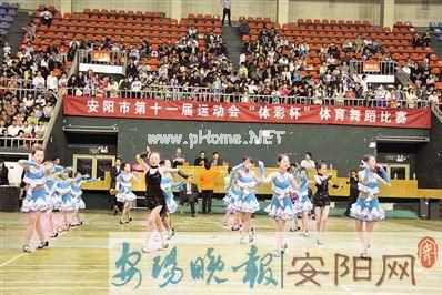 5月1日、5月2日,市第十一届运动会(社会公开组)中国象棋比赛、市第十一届运动会(社会公开组)体育舞蹈比赛、市第十一届运动会(社会公开组)乒乓球比赛三项赛事分别在市老年文体苑拉开帷幕,参赛者各展风采,在赛场上展开激烈比拼。图为体育舞蹈比赛现场。